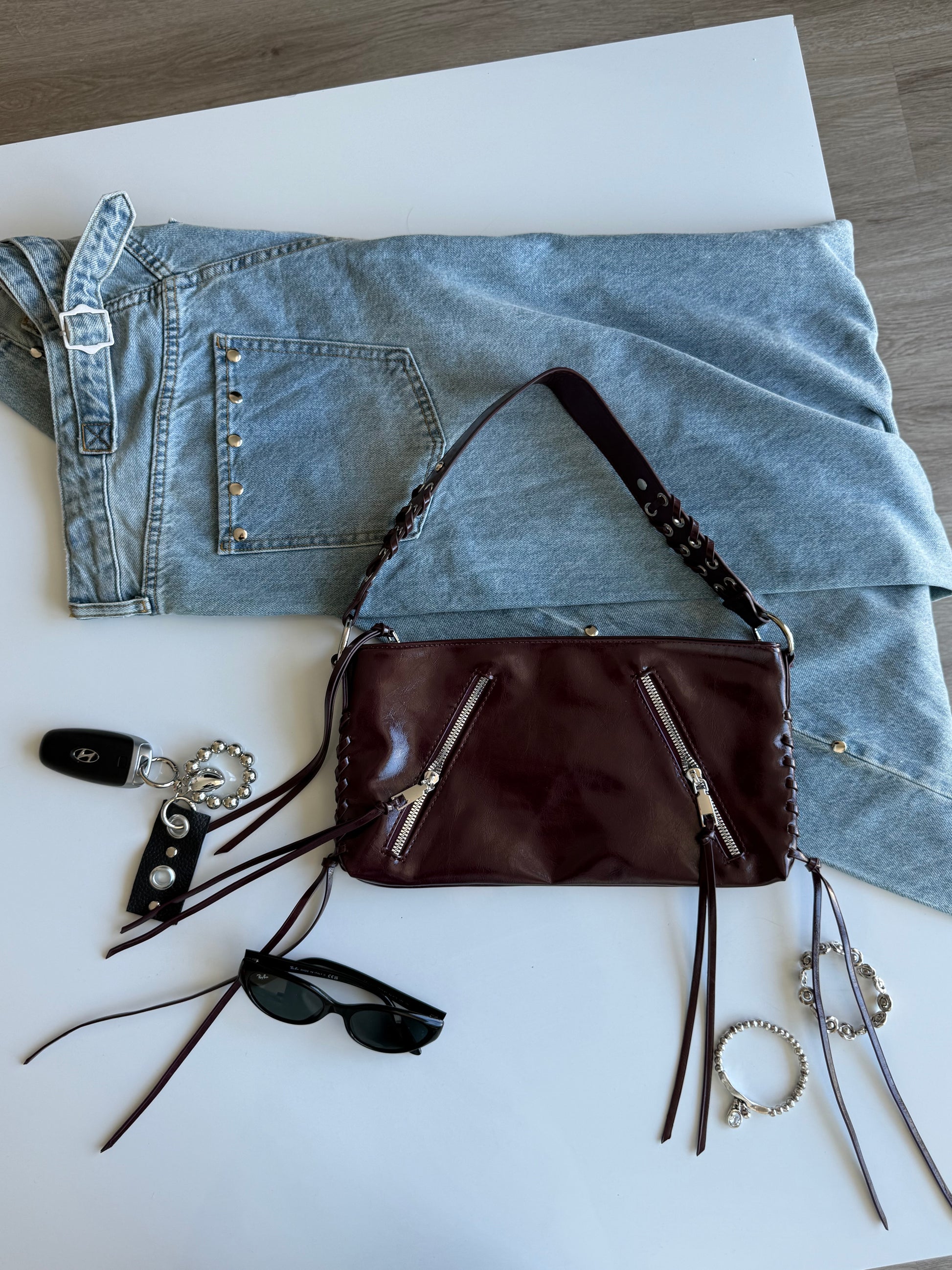 Made from vegan leather, the Low Key Bag balances a minimal silhouette with eye-catching metal details. A timeless everyday piece that works with everything.