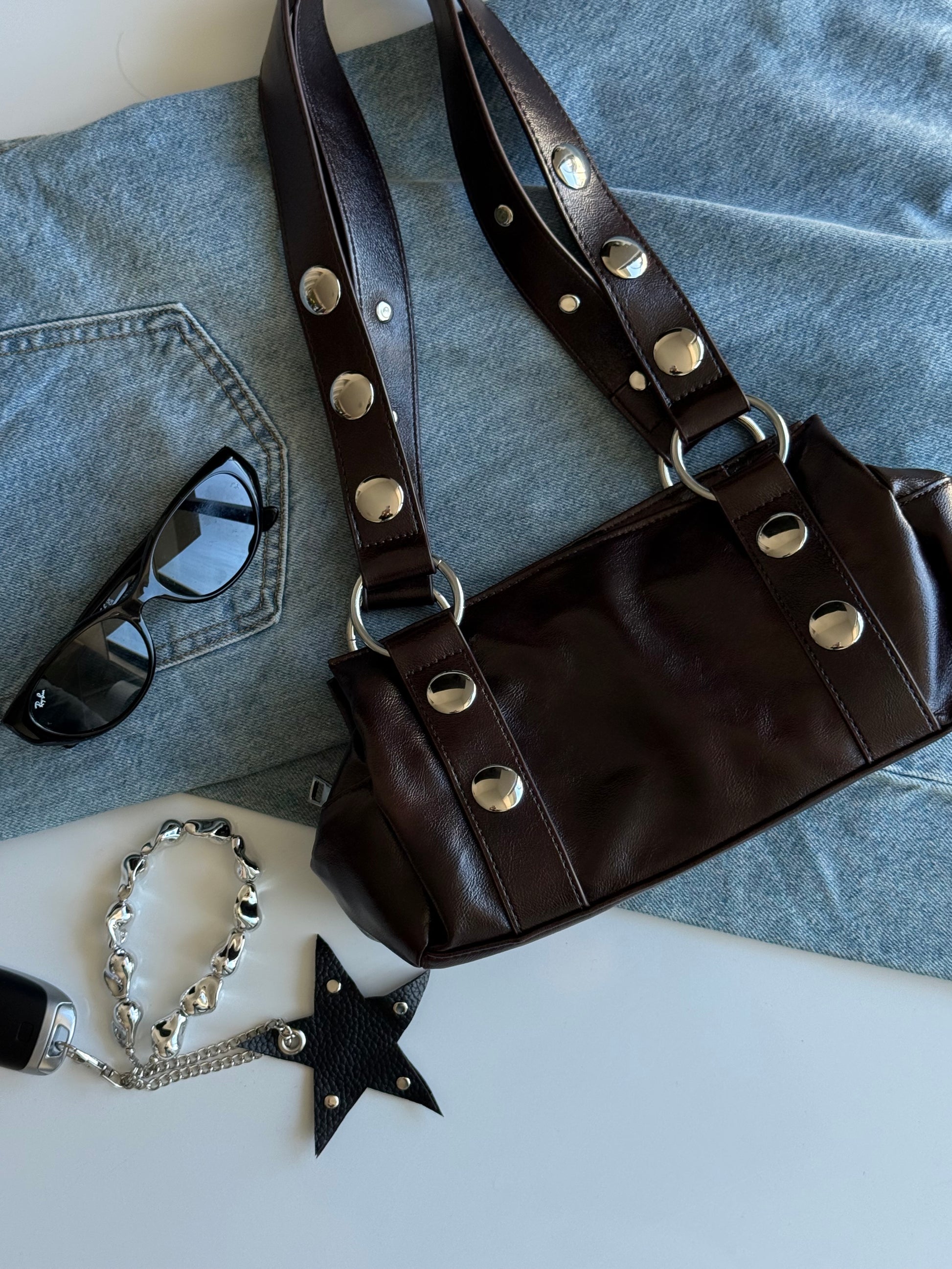 Crafted in vegan leather, the Off Duty Bag features metal details and a soft structured shape that fits your essentials without trying too hard. Easy, cool, and designed to move with you from day to night.