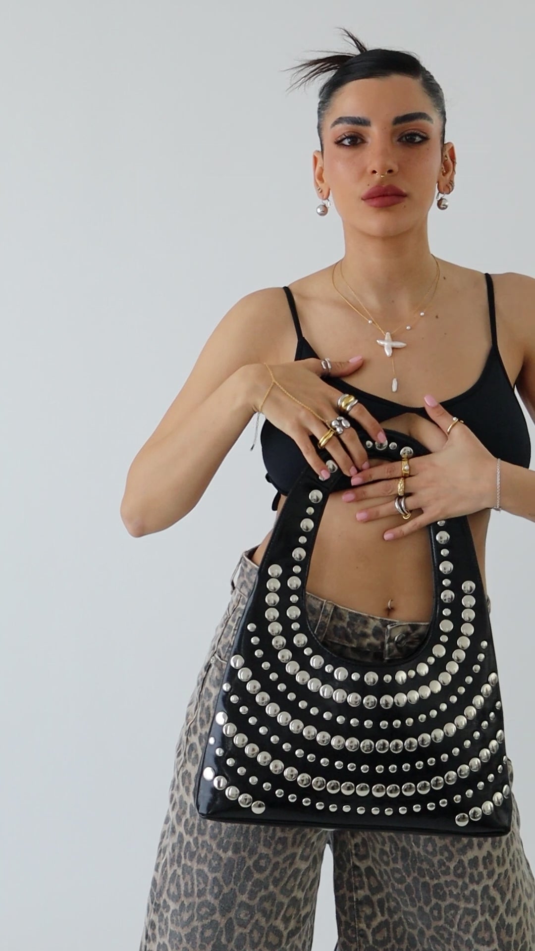 Studded bag, two side look.