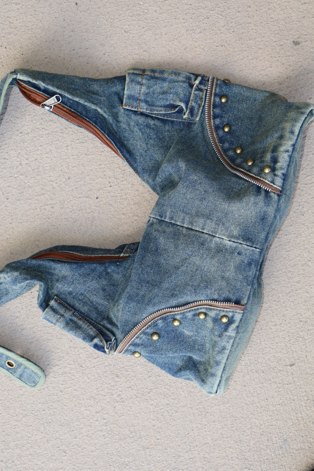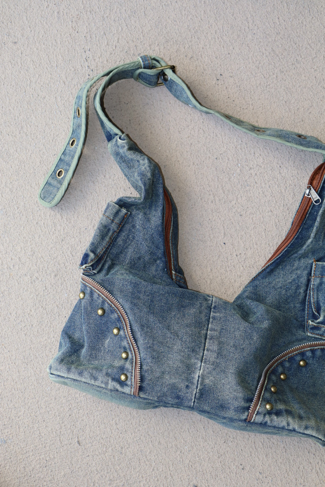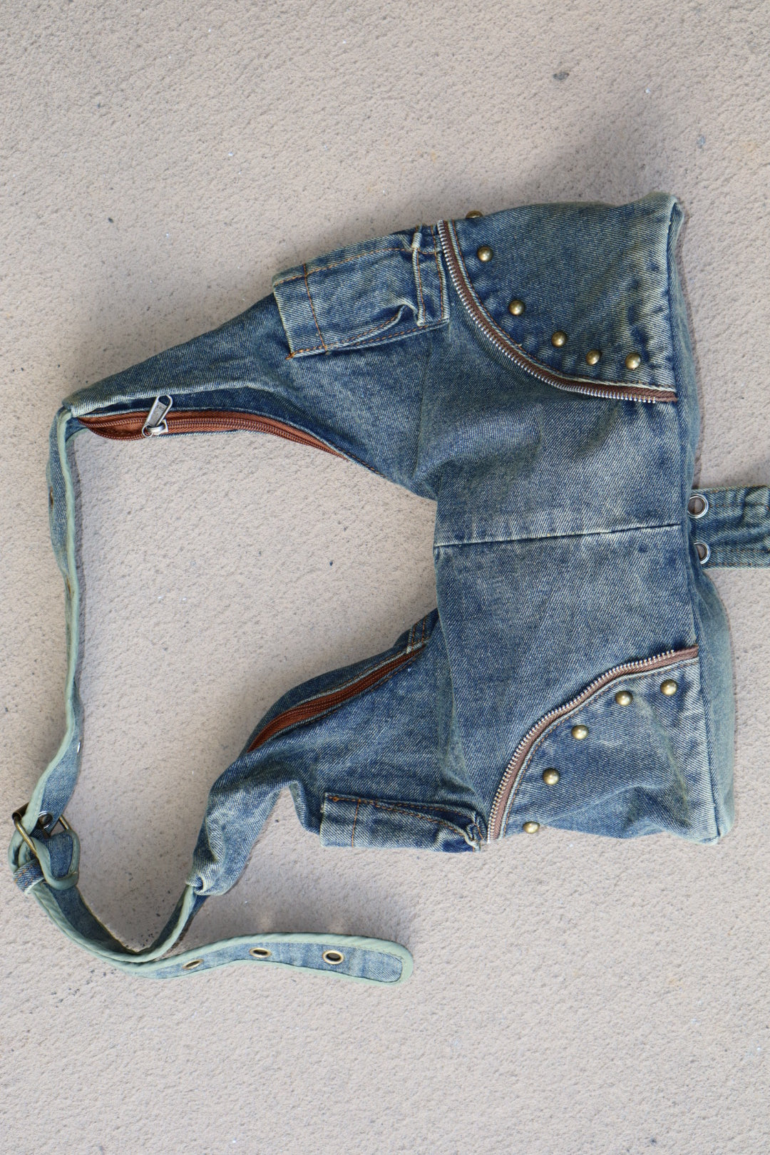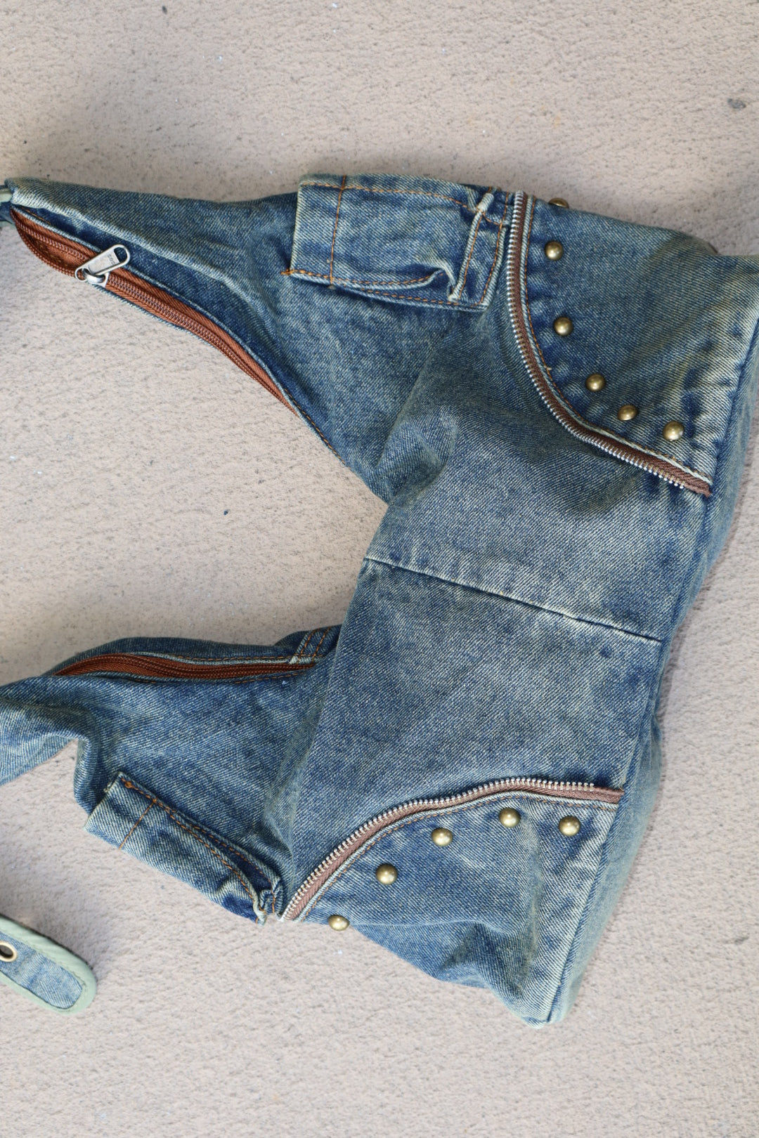 This isn’t your average denim bag. With a bold belt detail and gold-tone studs, it’s got just enough western to flirt, and just enough edge to disappear without saying goodbye.