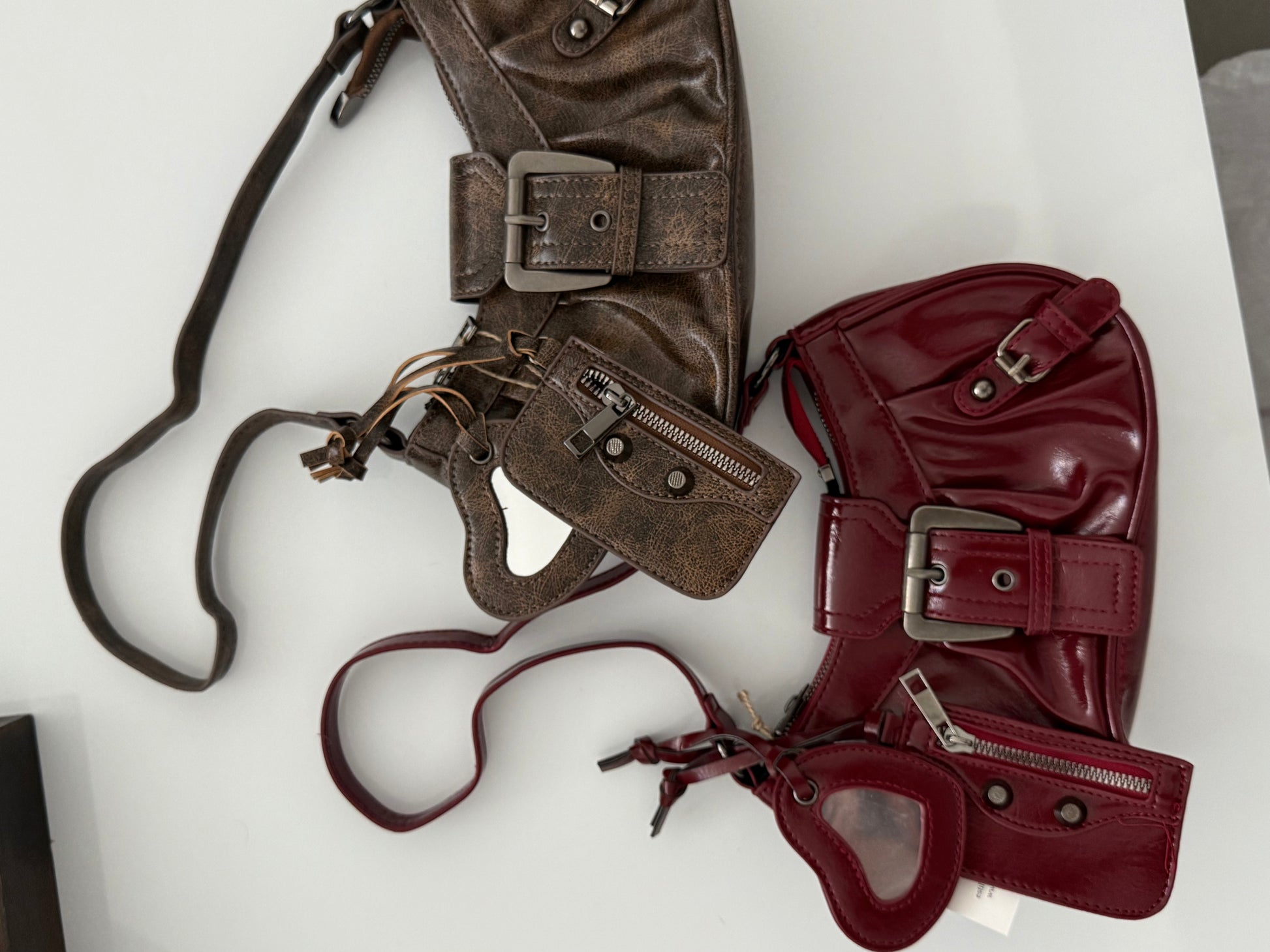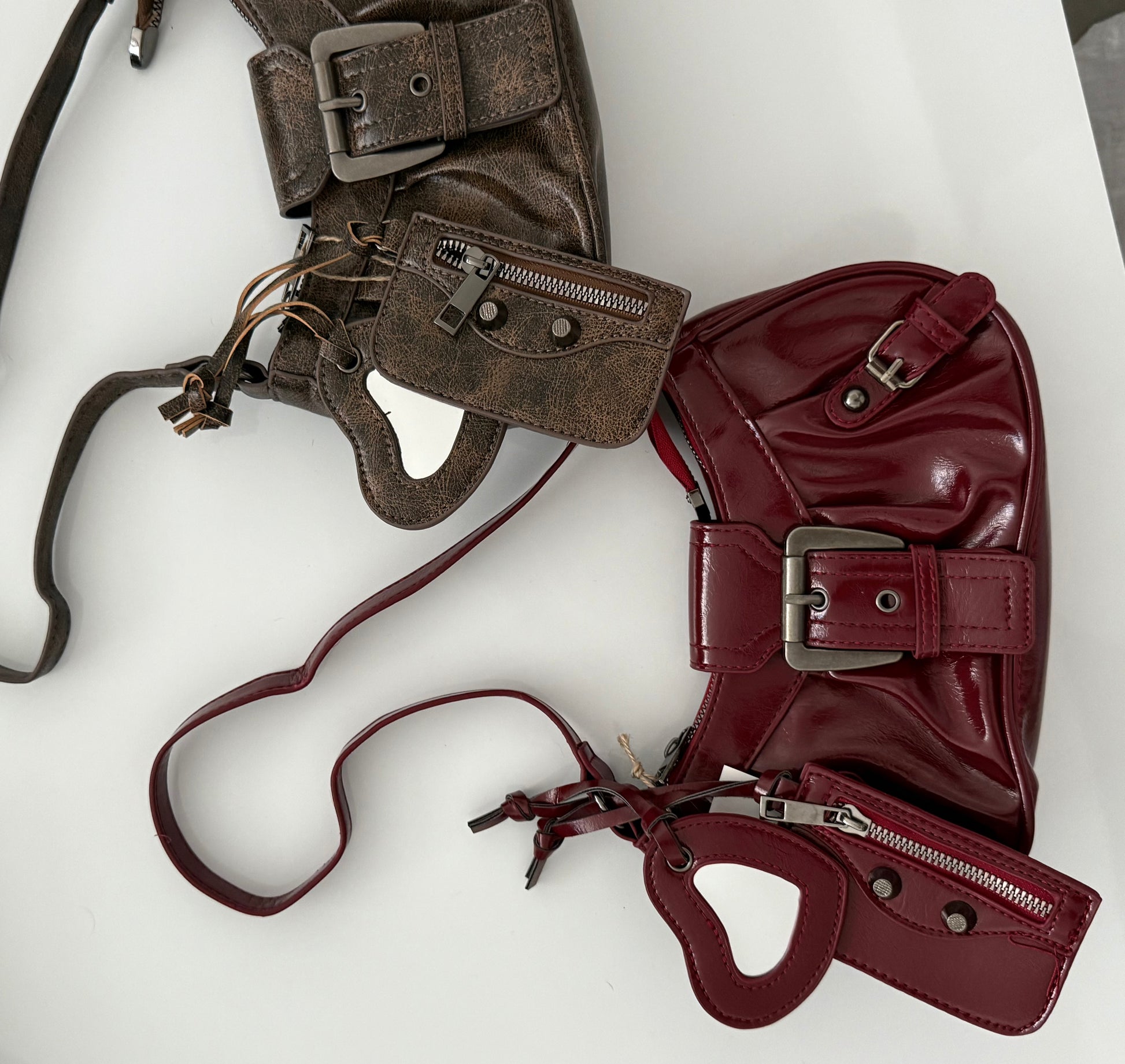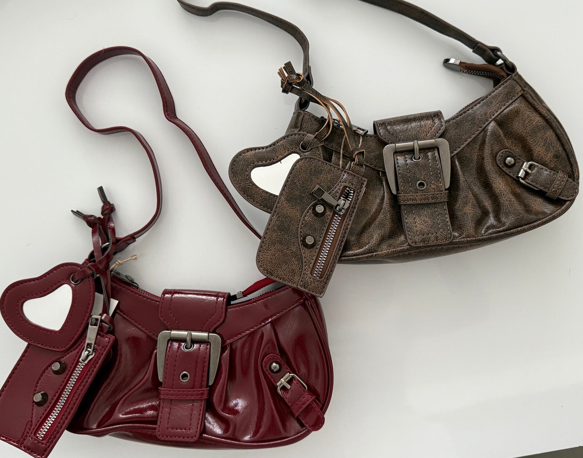 Meet your new statement bag — edgy, versatile, and made to stand out. Each piece comes with a detachable heart-shaped mirror keychain (because checking your look on the go is non-negotiable) and a mini wallet charm that clips right onto your bag. Wear it, layer it, accessorize it — this bag was designed to keep up with you.